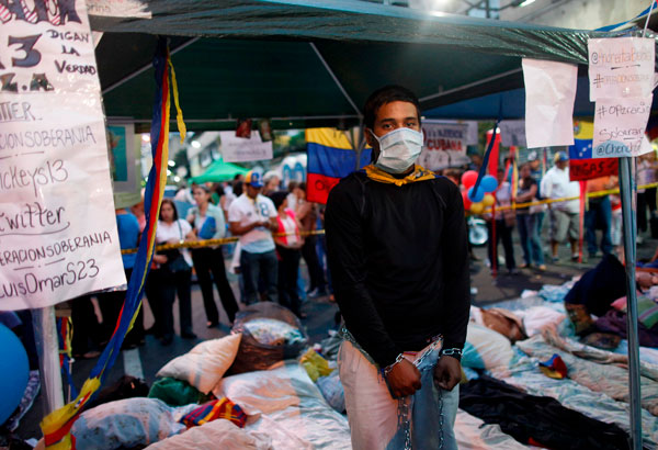 El 12 de febrero de 2014, una concentración de jóvenes en las puertas de la Fiscalía, en el centro de Caracas, convocada por los opositores Leopoldo López y María Corina Machado en protesta pacífica contra Nicolás Maduro, se convirtió en violenta por el ataque de grupos armados afectos al régimen, denominados colectivos, que rodearon la institución. A la manifestación calificada de “golpista” por Nicolás Maduro, se le llamó la “Masacre del Día de la Juventud”. Volaron piedras, molotov, y cuerpos de seguridad del Estado dispararon bombas lacrimógenas y balas a los manifestantes que corrían por las calles aledañas a la institución. Se registraron tres muertos y más de 800 heridos, algunos con descargas eléctricas y arrollados, según un informe del Programa Venezolano de Educación-Acción en Derechos Humanos (Provea). Televisoras fueron bloqueadas. La jornada, replicada en 16 estados, fue precedida por marchas; vigilias; cadenas humanas; rezos colectivos; “pancartazos”; músicos en la calle; hasta el cierre de calles denominadas “guarimbas”, a lo largo de todo el mes. Las manifestaciones se originaron el 4 de febrero, cuando estudiantes de la Universidad Nacional Experimental del Táchira, en la ciudad fronteriza de San Cristóbal, protestaron contra la inseguridad y el presunto abuso sexual a una compañera. La detención de seis estudiantes generó nuevas protestas estudiantiles que aumentaron la cifra de universitarios heridos y detenidos. Las protestas prosiguieron en los meses de marzo y abril de 2014 en Caracas y en las principales ciudades del país, lo que fue considerado la peor ola de manifestaciones en una década. Luego de la violenta represión a las protestas que dejaron 41 muertos, cientos de heridos y detenidos en todo el país, los grupos de estudiantes se replegaron en carpas ubicadas en distintos sectores de la ciudad, cubiertas con la bandera venezolana y mensajes pidiendo la renuncia de Maduro. El 4 de mayo en la madrugada, la Guardia Nacional Bolivariana irrumpió y desmanteló los campamentos. Detuvieron a 243 jóvenes y cargaron con sus pertenencias. Los muchachos alegaron “brutalidad policial”.